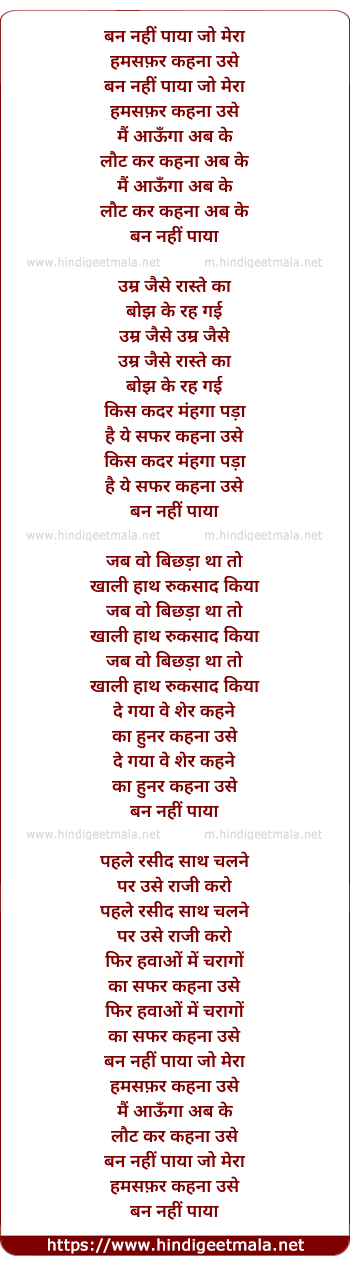 Lyrics of Ban Nahi Paya Jo Mera - बन नहीं पाया जो मेरा