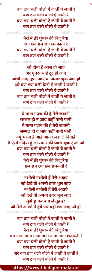 Lyrics of Ban Than Chalee Bolo - बण ठण चली बोलो