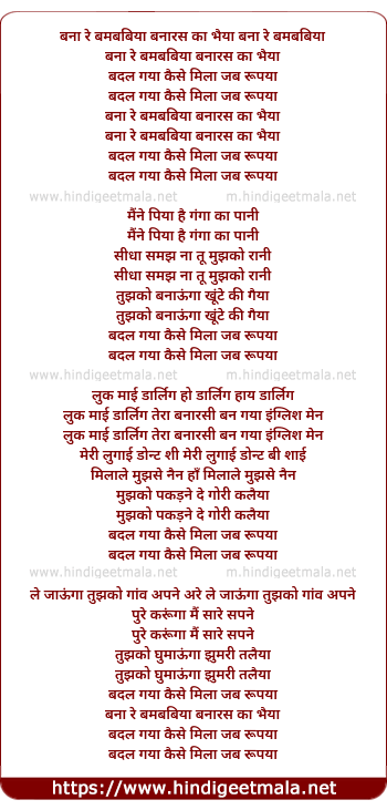 Poetic Translation - Lyrics of Bana Re Bambaiya Banaras Ka Bhaiya - बना रे बम्बइया बनारस का भैया