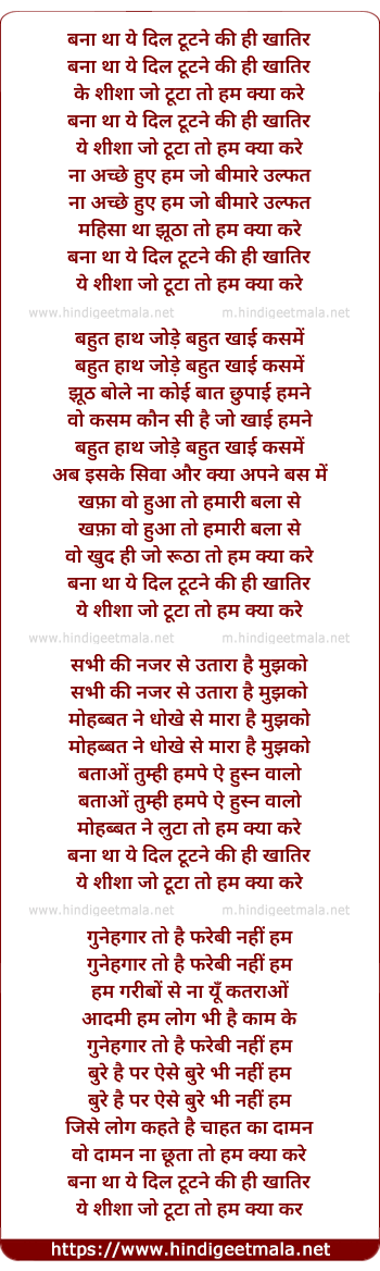 Lyrics of Bana Tha Ye Dil Tutne Hi Ki Khatir - बना था ये दिल टूटने की ही खातिर