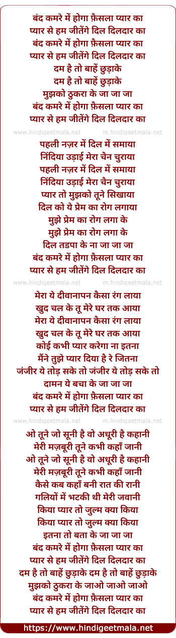 Film CastShatrughan Sinha, Dimple Kapadia, Chunky Pandey, Pran, Gulshan Grover, Danny Denzongpa, Prem Chopra, Shakti Kapoor, Ranjeet, Annu Kapoor, Anjana Mumtaz, Rajesh PuriSingerAsha Bhosle, Lata Mangeshkar, Pankaj UdhasLyricistMusic ByBappi LahiriDirectorShibu MitraProducerPahlaj NihalaniExternal LinksGunahon Ka Faisla at IMDB Gunahon Ka Faisla at WikipediaYouTubeGunahon Ka Faisla at YT