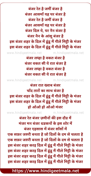 Lyrics of Banjar Ret Hai Zameen Banjar Hai - बंजर रेत है जमीं बंजर है