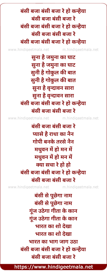 Lyrics of Bansi Baja Bansi Baja Re Ho Kanhaiya - बंसी बजा बंसी बजा रे हो कन्हैया