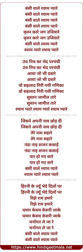 Lyrics of Bansi Wale Shyam Pyare Krishna - बंसी वाले श्याम प्यारे