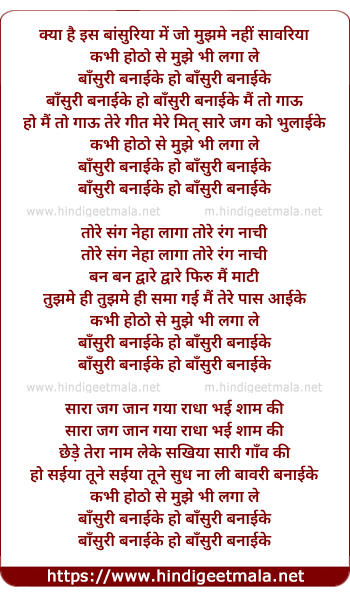 Lyrics of Kabhi Hotho Se Mujhe Bhi Laga Le Bansuri Banaike - कभी होठो से मुझे भी लगा ले बाँसुरी बनाईके