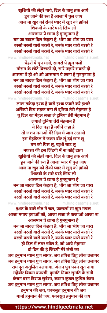 Lyrics of Baraso Baraso Yaaro Baraso Re - बरसो बरसो यारो बरसो रे