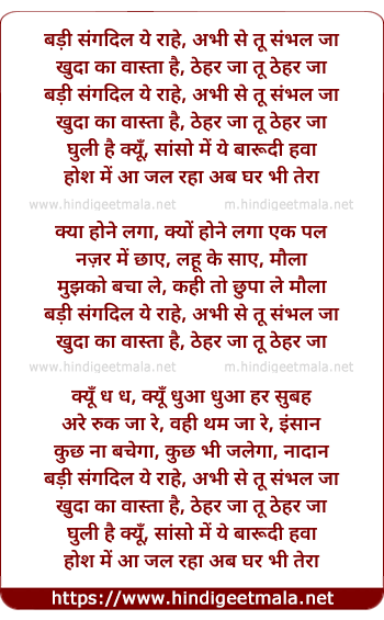 badi sangdil ye raahe, abhi se tu sambhal ja