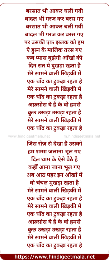 Mere Saamne Wali Khidki Mein Ek Chand Ka Tukda Rehta Hai - मेरे सामने वाली खिड़की में एक चाँद का टुकड़ा रहता है