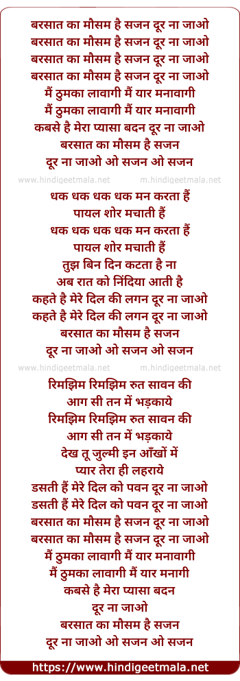 Lyrics of Barsat Ka Mausam Hai Sajan Door Na Jao - बरसात का मौसम है सजन दूर ना जाओ