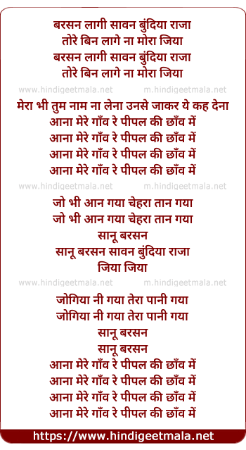 Lyrics of Barsan Lagi Sawan Bundiya Raja - बरसन लागी सावन बुंदिया राजा