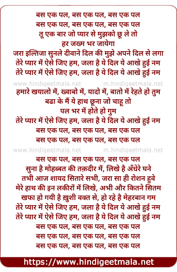 Lyrics of Bas Ek Pal Tu Ek Baar - बस एक पल तू एक बार