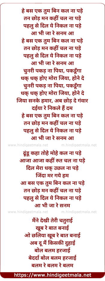 he bas ek tum binn kal na pade