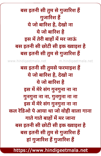 Lyrics of Bas Itni Si Tum Se Guzaarish Hai - बस इतनी सी तुम से गुजारिश हैं