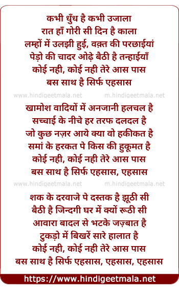 Lyrics of Bas Saath Hai Sirf Ehsaas - बस साथ है सिर्फ अहसास