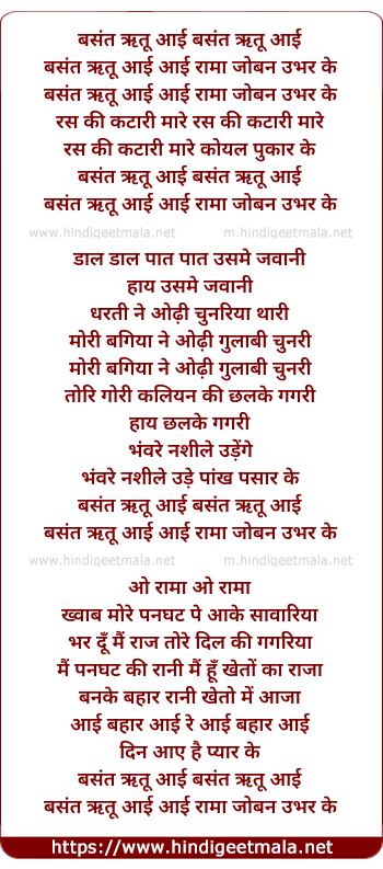 Lyrics of Basant Ritu Aayi Rama Joban Ubhar Ke - बसंत ऋतू आई बसंत ऋतू आई