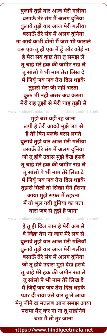 Lyrics of Basau Main Tere Sang Alag Duniya - बसाऊं मैं तेरे संग अलग दुनिया
