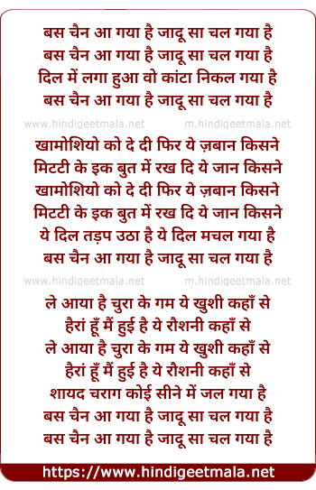 Lyrics of Bas Chain Aa Gaya Hai - बस चैन आ गया है