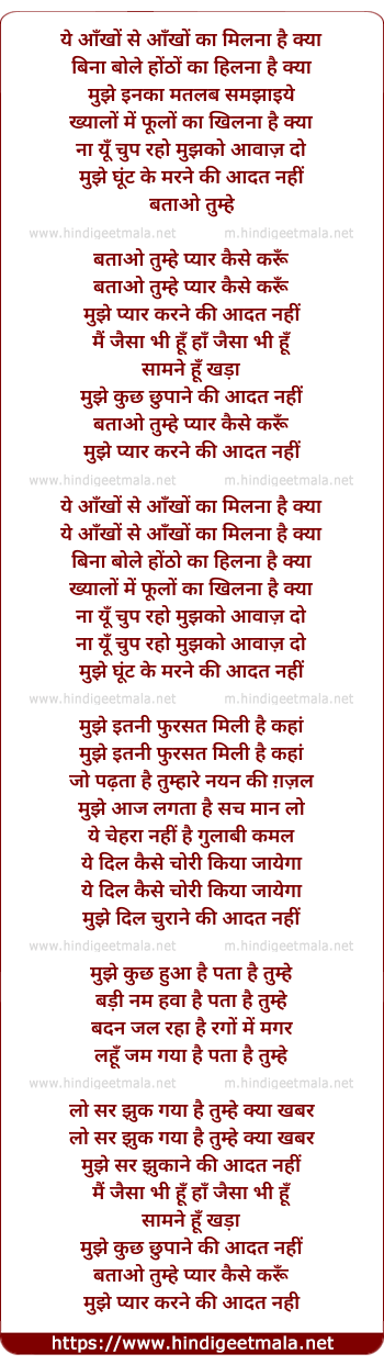 Lyrics of Batao Tumhe Pyar Kaise Karu - बताओ तुम्हे प्यार कैसे करूँ