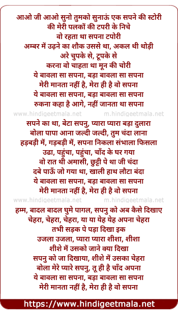 Lyrics of Bawla Sa Sapna (The Children Come To Sing) - आओ जी आओ सुनो तुमको सुनाऊं एक सपने की स्टोरी
