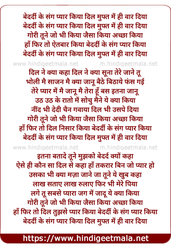 Lyrics of Bedardi Ke Sang Pyar Kiya - बेदर्दी के संग प्यार किया