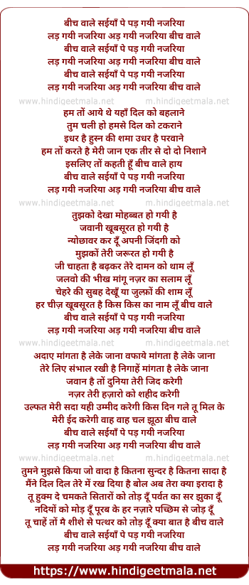 Lyrics of Beech Wale Saiyaa Se Ladh Gayi Najariya - बीच वाले सईयाँ पे पड़ गयी नजरिया