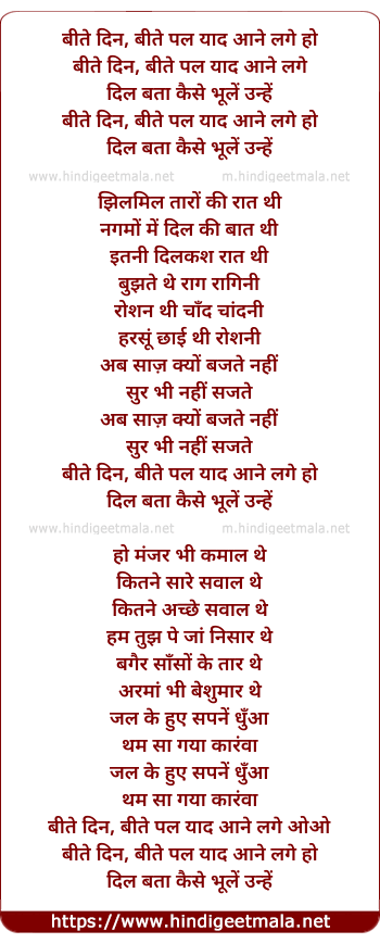 Lyrics of Beete Din Beete Pal - बीते दिन, बीते पल याद आने लगे हो
