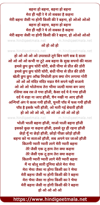 Lyrics of Behana Ho Behana Mera Hi Nahi Re - बहना हो बहना मेरा ही नहीं रे