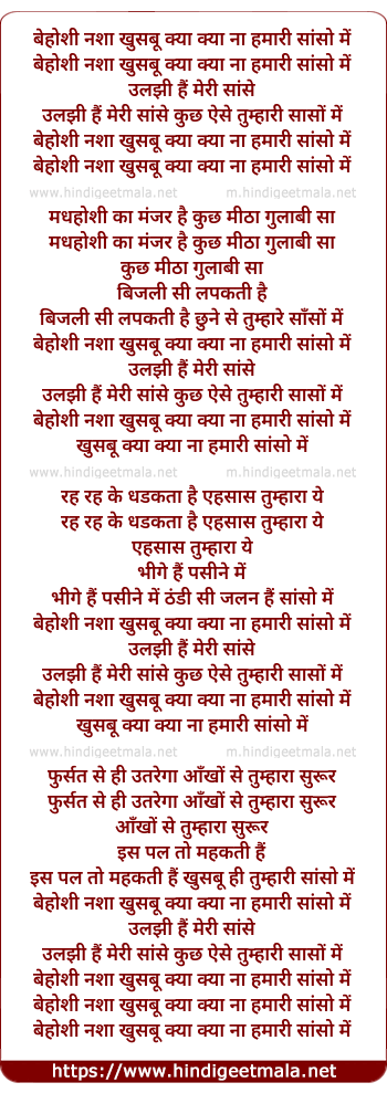 Lyrics of Behoshi Nasha Khushboo - बेहोशी नशा खुसबू