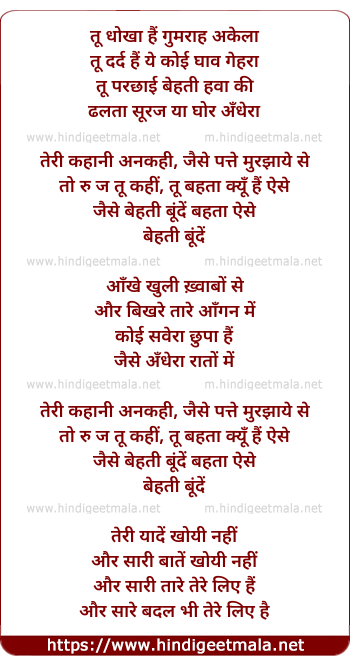 Lyrics of Behti Boonde - तू धोखा हैं गुमराह अकेला
