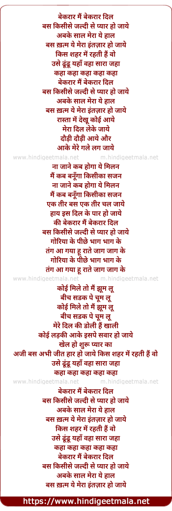 Lyrics of Bekarar Mai Bekarar Dil - बेकरार मैं बेकरार दिल