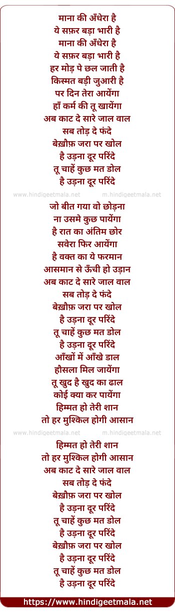 Lyrics of Bekhauf Zara Par Khol Hai Udna Dur Parinde - बेख़ौफ़ जरा पर खोल है उड़ना दूर परिंदे