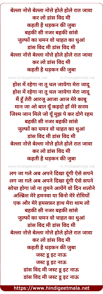 Lyrics of Bella Notte Dance With Me - बेल्ला नोत्ते डांस विद मी