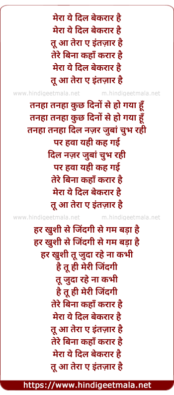 Lyrics of Beqaraar - मेरा ये दिल बेकरार है
