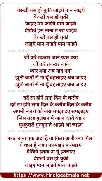Lyrics of Berukhi Bas Ho Chuki - बेरुखी बस हो चुकी
