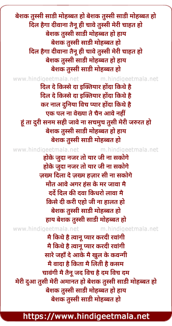 Lyrics of Beshak Tussi Sadi Mohabbat Ho - बेशक तुस्सी साडी मोहब्बत हो