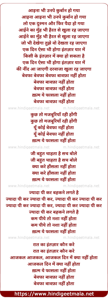 Lyrics of Bewafa Bawafa Nahi Hota - आइना भी उनपे कुर्बान हो गया