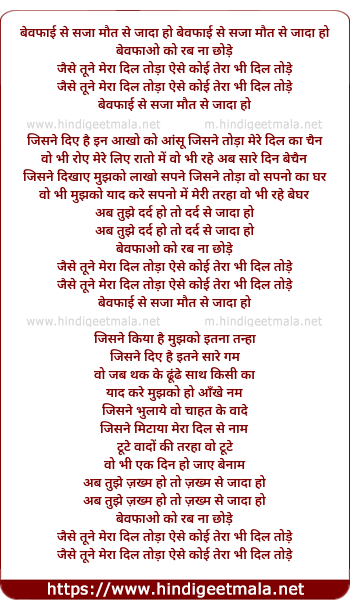 Lyrics of Bewafai Ki Saza Maut Se Ziyada Ho - बेवफाई से सजा मौत से जादा हो बेवफाई से सजा मौत से जादा हो