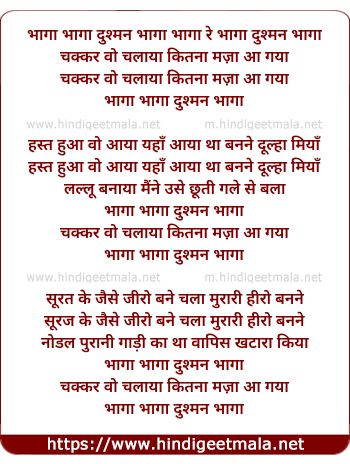 Lyrics of Bhaaga Bhaaga Dushman Bhagga Chakkar - भागा भागा दुश्मन भागा चक्कर