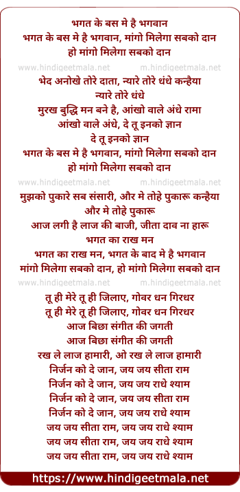 Lyrics of Bhagat Ke Bas Me - भगत के बस मे