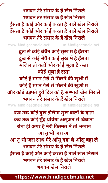 Lyrics of Bhagawan Tere Sansar Ke Hai Khel Nirale - भगवन तेरे संसार के हैं खेल निराले