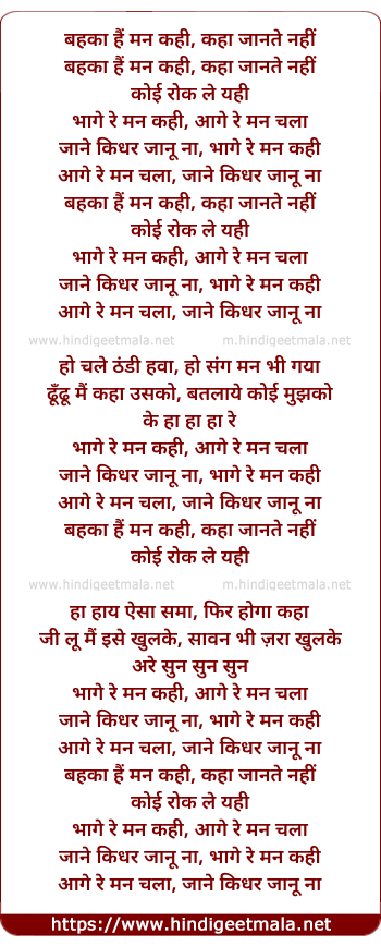aage rey mann chala, janey kidhar janu naa