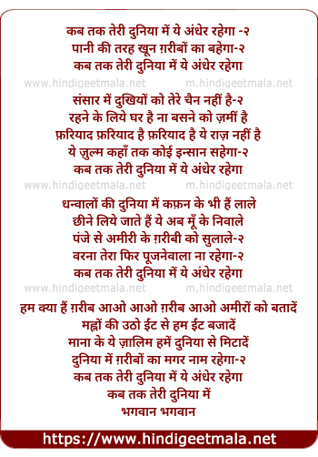 Lyrics of Bhagwan Kab Tak Teri Duniya Me - कब तक तेरी दुनिया में ये अंधेर रहेगा -२