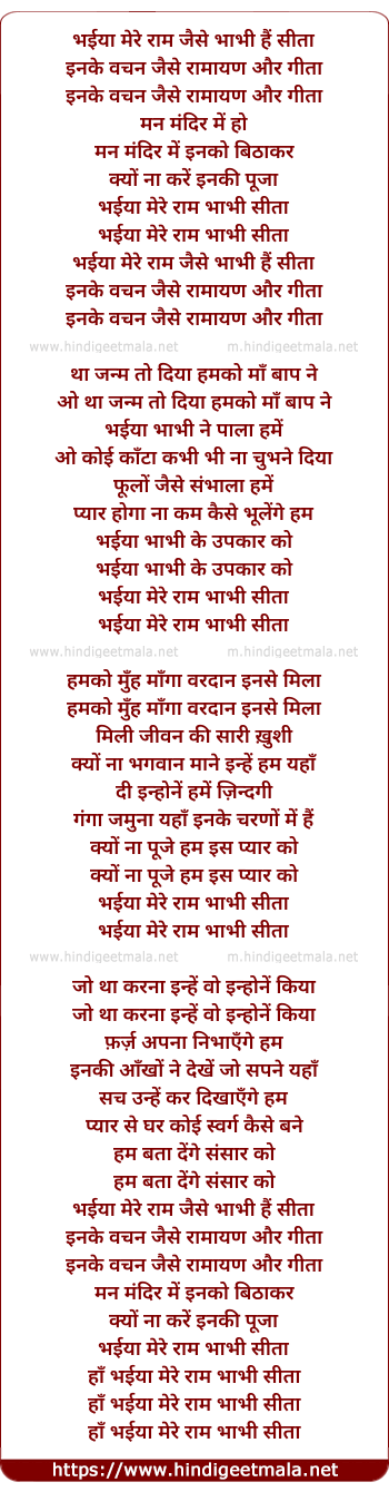 Lyrics of Bhaiya Mere Ram - भईया मेरे राम
