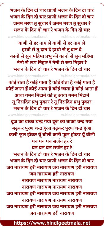 Lyrics of Bhajan Ke Din Do Char - भजन के दिन दो चार