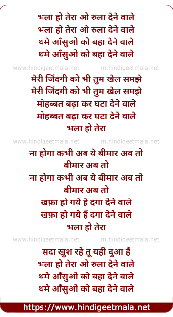 Lyrics of Bhala Ho Tera O Roola Dene Wale - भला हो तेरा ओ रुला देने वाले