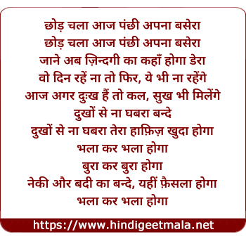 Lyrics of Bhala Kar Bhala Hoga (Part - 2) - छोड़ चला आज पंछी अपना बसेरा