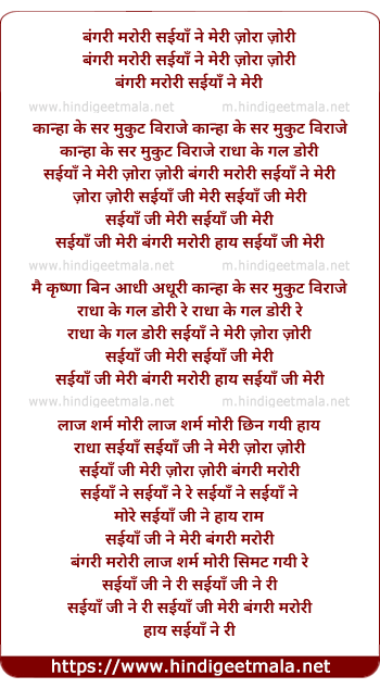 Lyrics of Bhangari Marori Saiya Ne Meri - बंगरी मरोरी सईयाँ ने मेरी