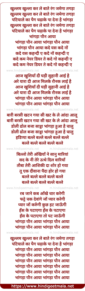 Lyrics of Bhangra Paun Aaya - भांगड़ा पौन आया