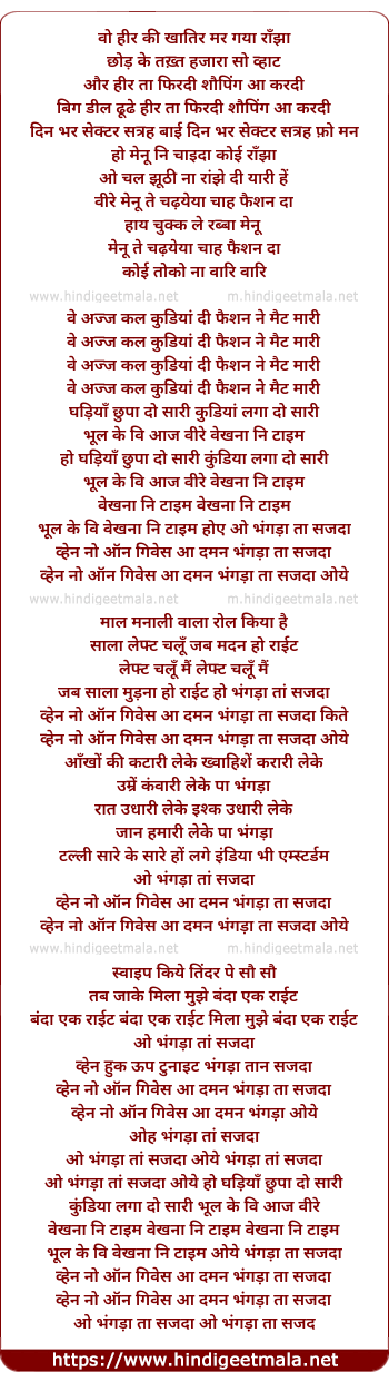 oh bhangra ta sajda ghadiyan chhupa do saari