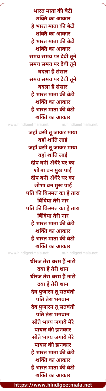 Lyrics of Bharat Mata Ki Beti - भारत माता की बेटी